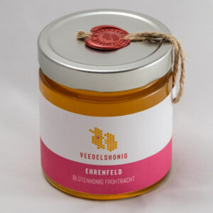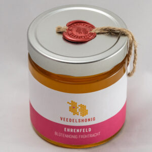 Veedelshonig aus Ehrenfeld ist ein flüssiger Blütenhonig aus der Frühtracht. Die Bienen stehen in unmittelbarer Nähe zur Kölner Moschee und haben durch den Flugradius von ca. 3km ein großes Trachtangebot. Zur Tracht gehören die Roßkastanie, Robinie (Akazienhonig) sowie kleine Anteile von Linde. Zusätzlich sammeln die Bienen Nektar und Pollen aus den Gärten und Balkonen.